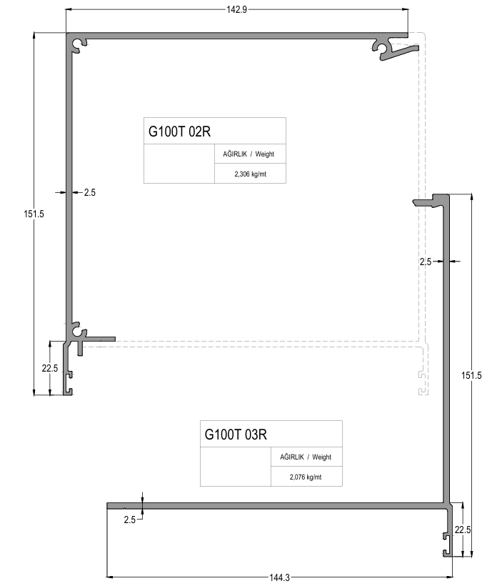 - Konfiguracije: dvije pomične + jedna fiksna sekcija ili jedna pomična + jedna fiksna sekcija
