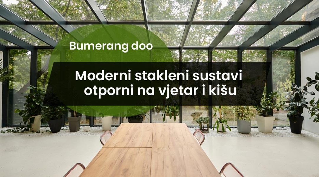 Ako želite stakleni sustav koji će istovremeno štititi, trajati i vizualno oduševiti, Bumerang je prava adresa za vas. Ova specijalizirana tvrtka nudi stručno savjetovanje, profesionalnu ugradnju i dugogodišnje iskustvo u radu sa staklenim sustavima otpornim na vjetar i kišu. Sa preciznošću, modernom opremom i vrhunskim materijalima, Bumerang osigurava rješenja koja ispunjavaju najviše standarde kvalitete, sigurnosti i estetike.